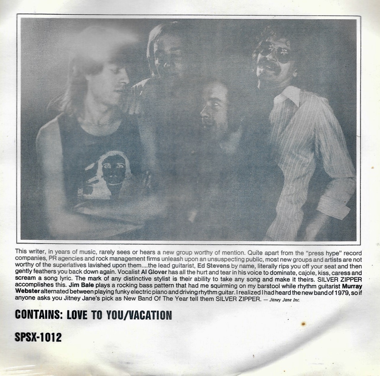 Silver Zipper was formed in April 1978 with Ed Stevens on guitar, Murray Webster also on guitar, Jim Bale on bass, and Al Glover on drums. It was managed by Ihor Todoruk, also known as Ihor Fee Fangian. Silver Zipper’s run was brief and during its short existence, they performed mostly at the Carillon Hotel in Carillon, Québec. Other venues included the Arc in Montreal, the Lakeview Inn in Knowlton, some bar long gone in Rivière Beaudette, and the British Hotel in Aylmer.